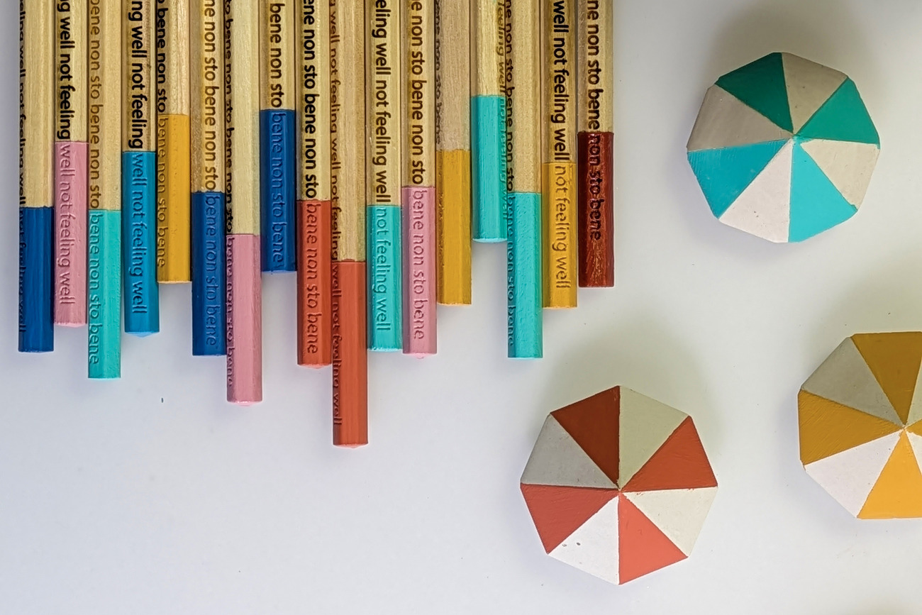 La matita come medium espressivo, un palinsesto mutevole delle emozioni umane.L’accorciarsi della matita e la metamorfosi della scritta durante la tempera diventano metafora del trascorrere del tempo e evocano il concetto platonico del divenire, un flusso costante tra il “non sto bene” e lo “sto bene,” dichiarazione della dualità intrinseca dell’esistenza umana.Nel contesto di questo progetto, la matita diventa simbolo …